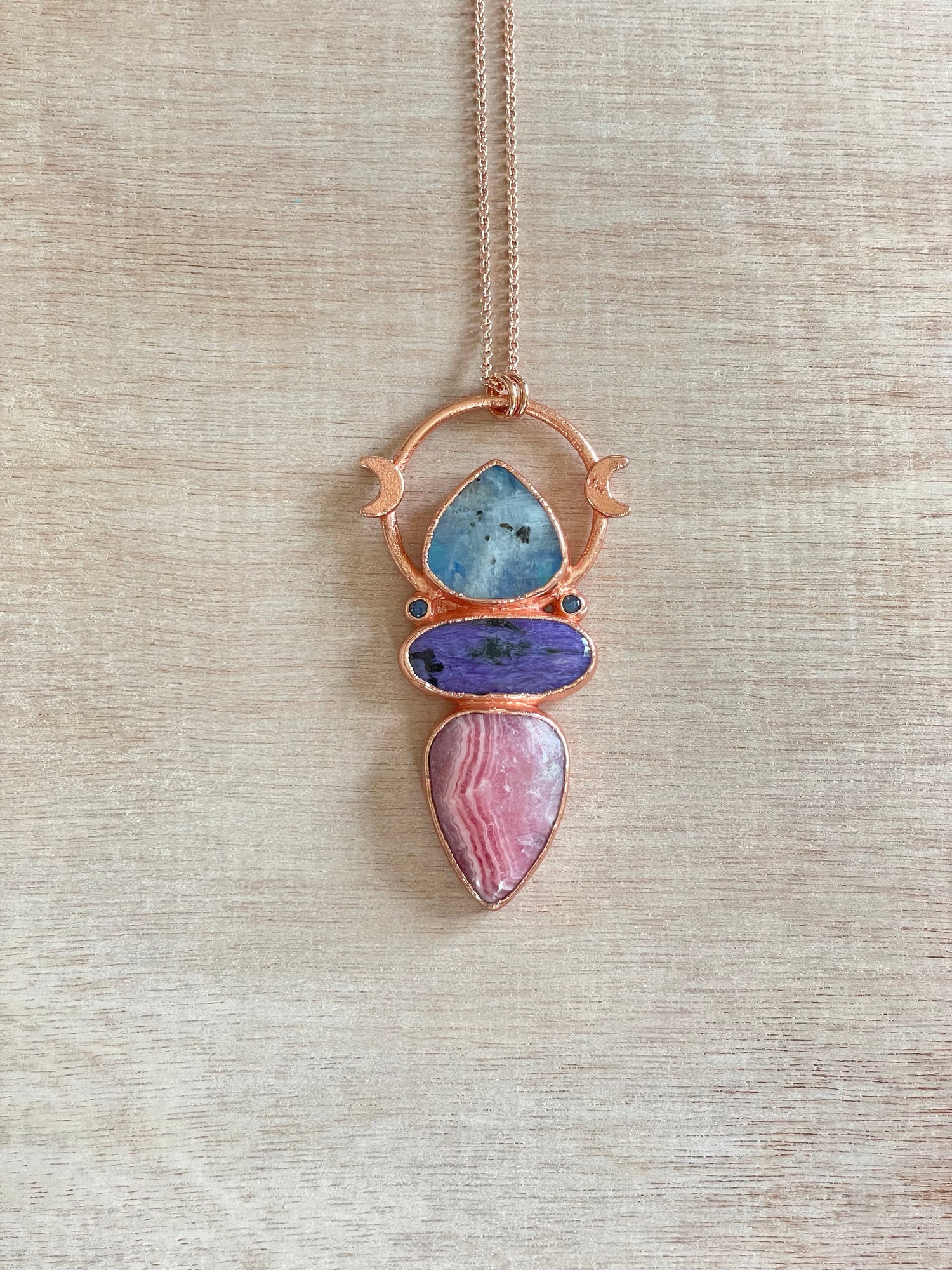 Bumblebee Jasper, Moonstone and Rhodochrosite Pendant
