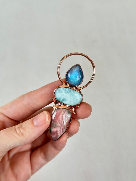 Bumblebee Jasper, Moonstone and Rhodochrosite Pendant