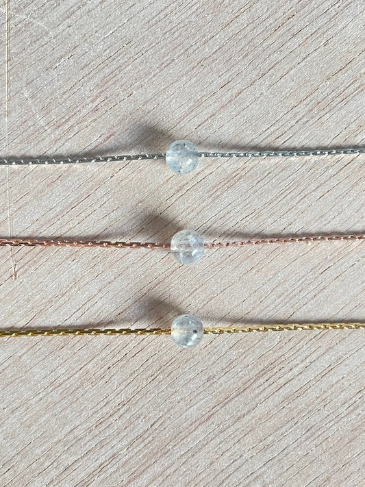 Our minimalist gemstone necklaces consist of a wide collection of micro authentic gems on the daintiest chain. Each gemstone option is offered in Gold, Silver, and Rose Gold. All double plated for longevity while keeping it affordable.