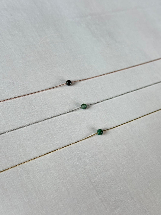 Our minimalist gemstone necklaces consist of a wide collection of micro authentic gems on the daintiest chain. Each gemstone option is offered in Gold, Silver, and Rose Gold. All double plated for longevity while keeping it affordable.