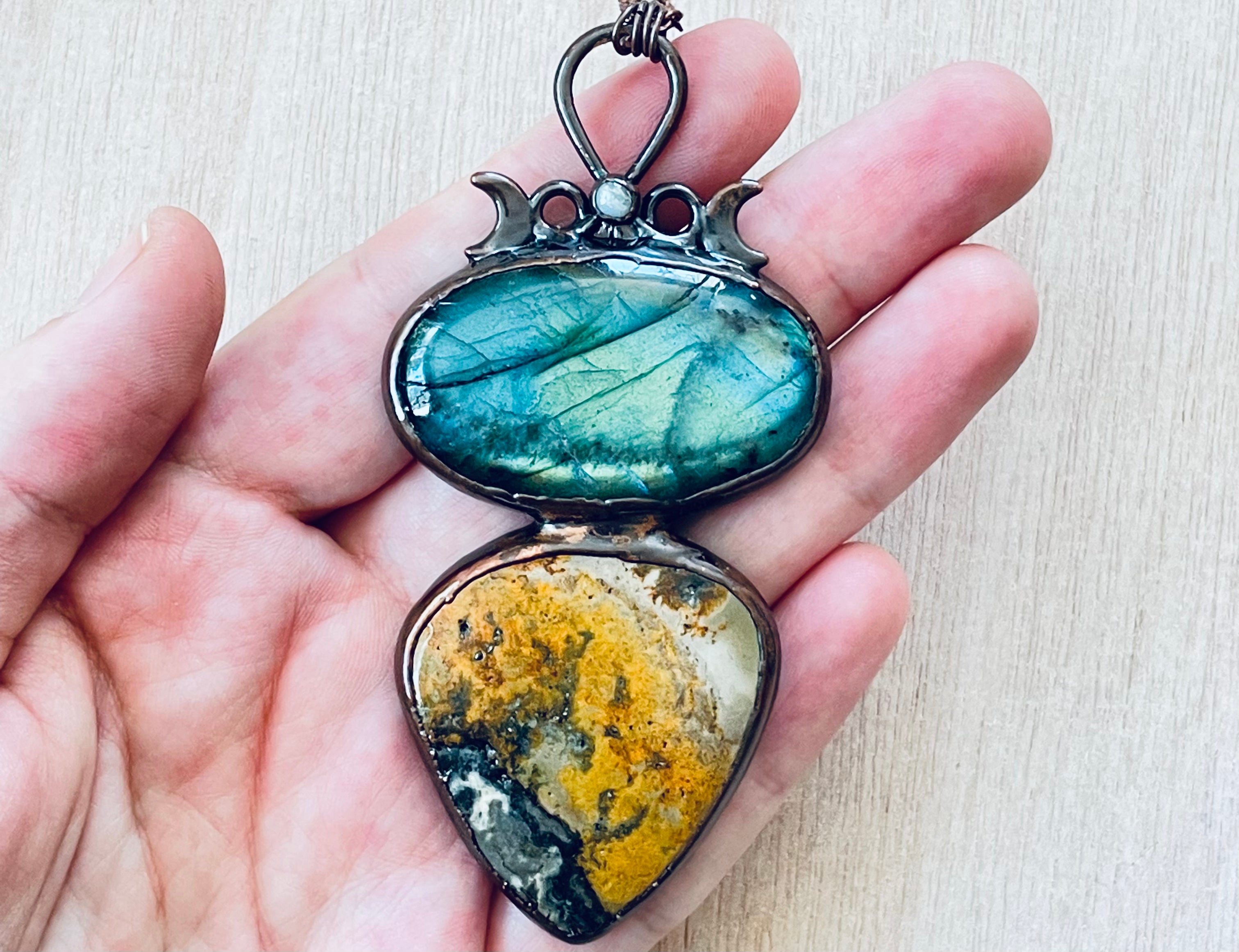 Pendentif en pierre de lune, labradorite et amazonite
