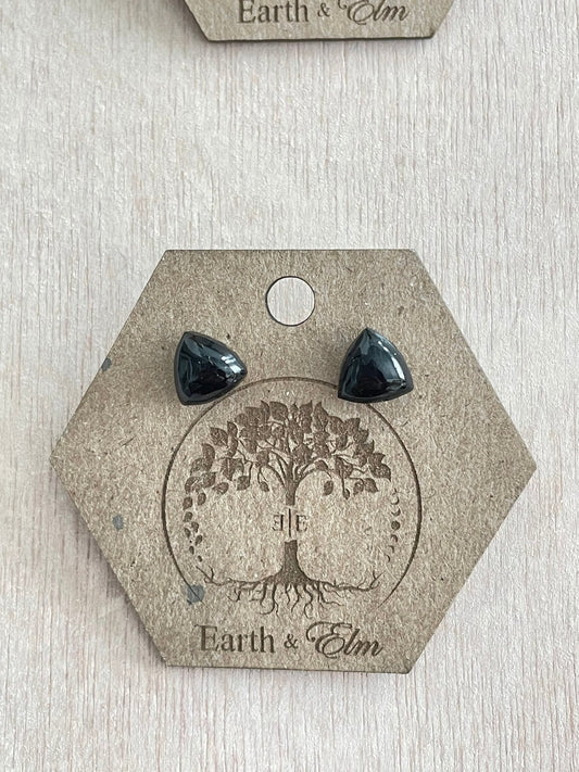 Clous d'oreilles Trillion en onyx noir | Forme triangulaire | Clous d'oreilles en pierres précieuses | Boucles d'oreilles à tige |