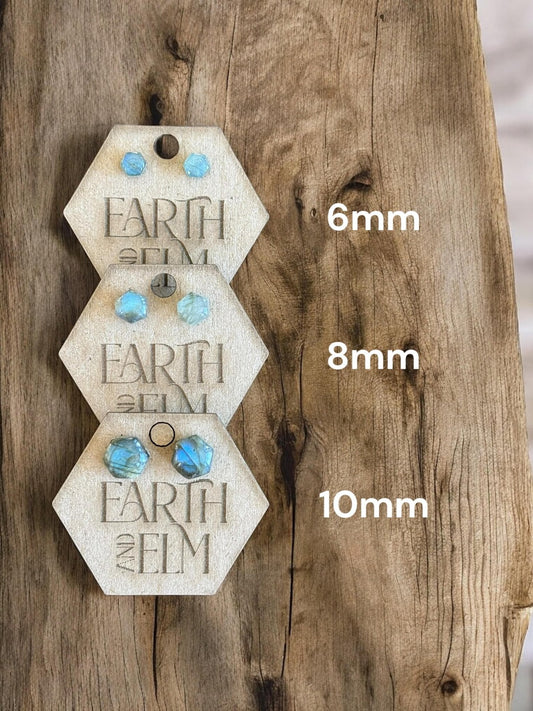 Clous d'oreilles en labradorite taille hexagonale | Clous d'oreilles | Boucles d'oreilles en pierres précieuses | Clous d'oreilles en cristal 8 mm | 10 mm