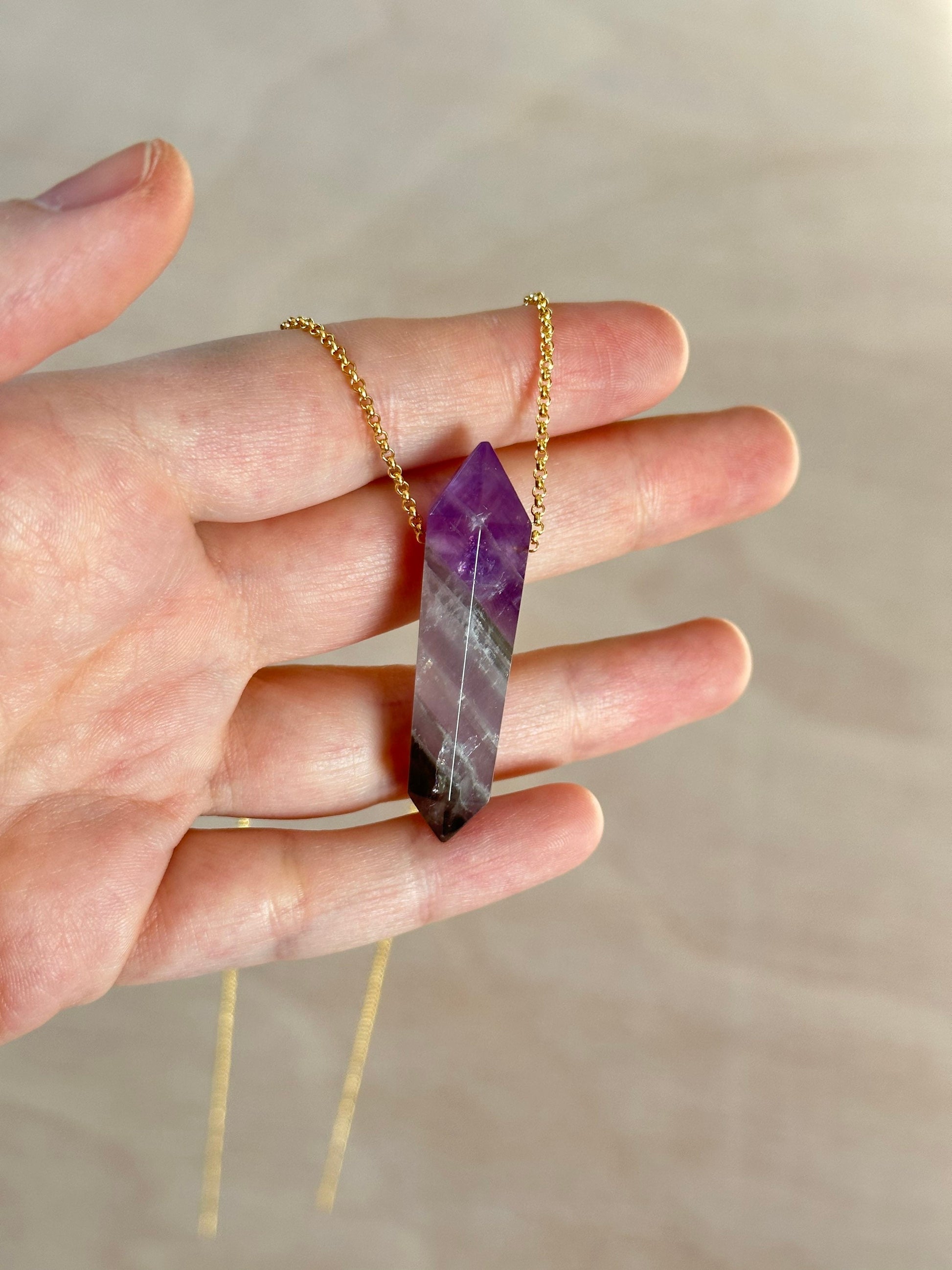 Amethyst Point Necklace | Crystal Gemstone Tower Pendant | Double Terminated Crystal | Amethyst Jewelry