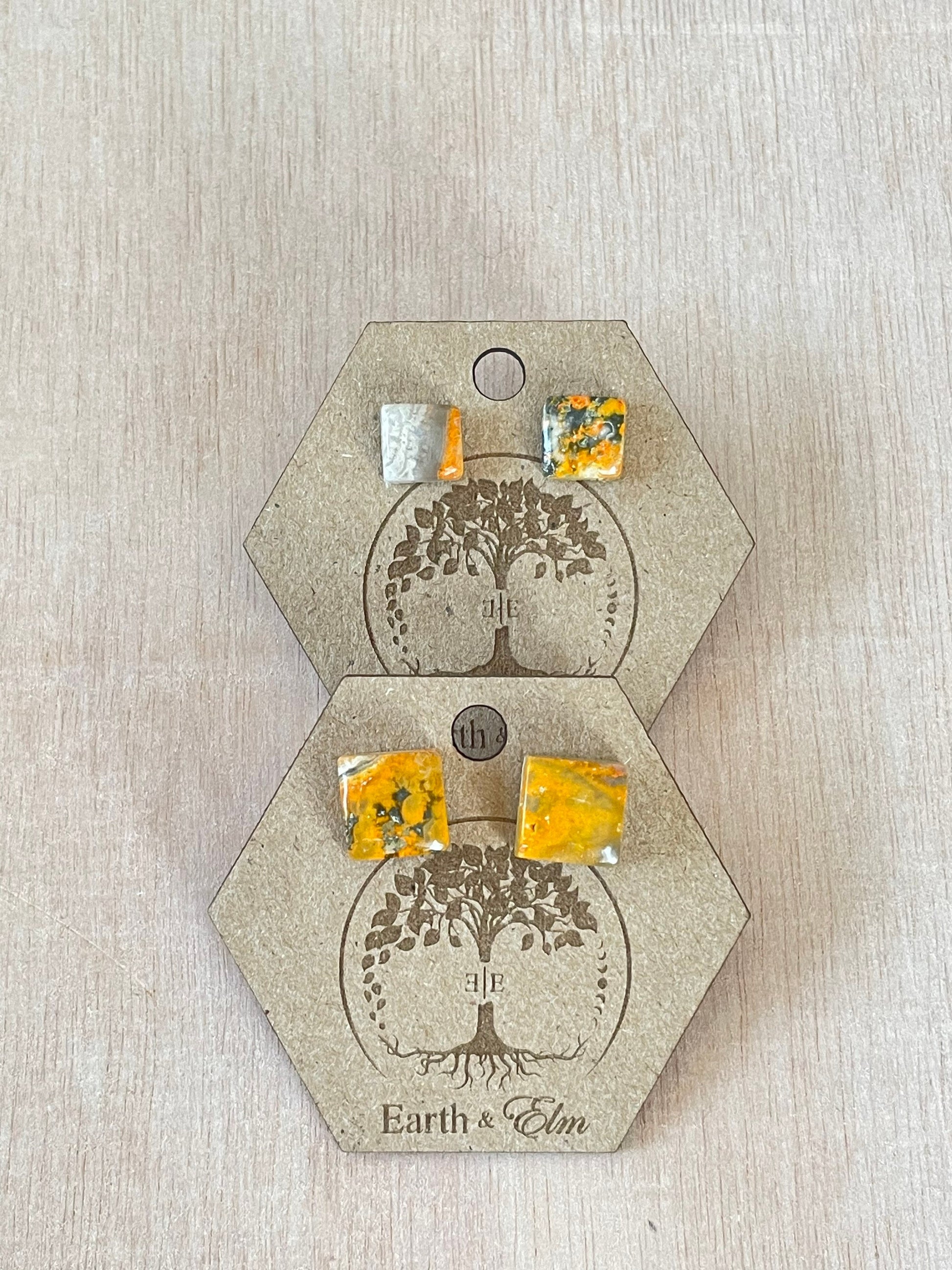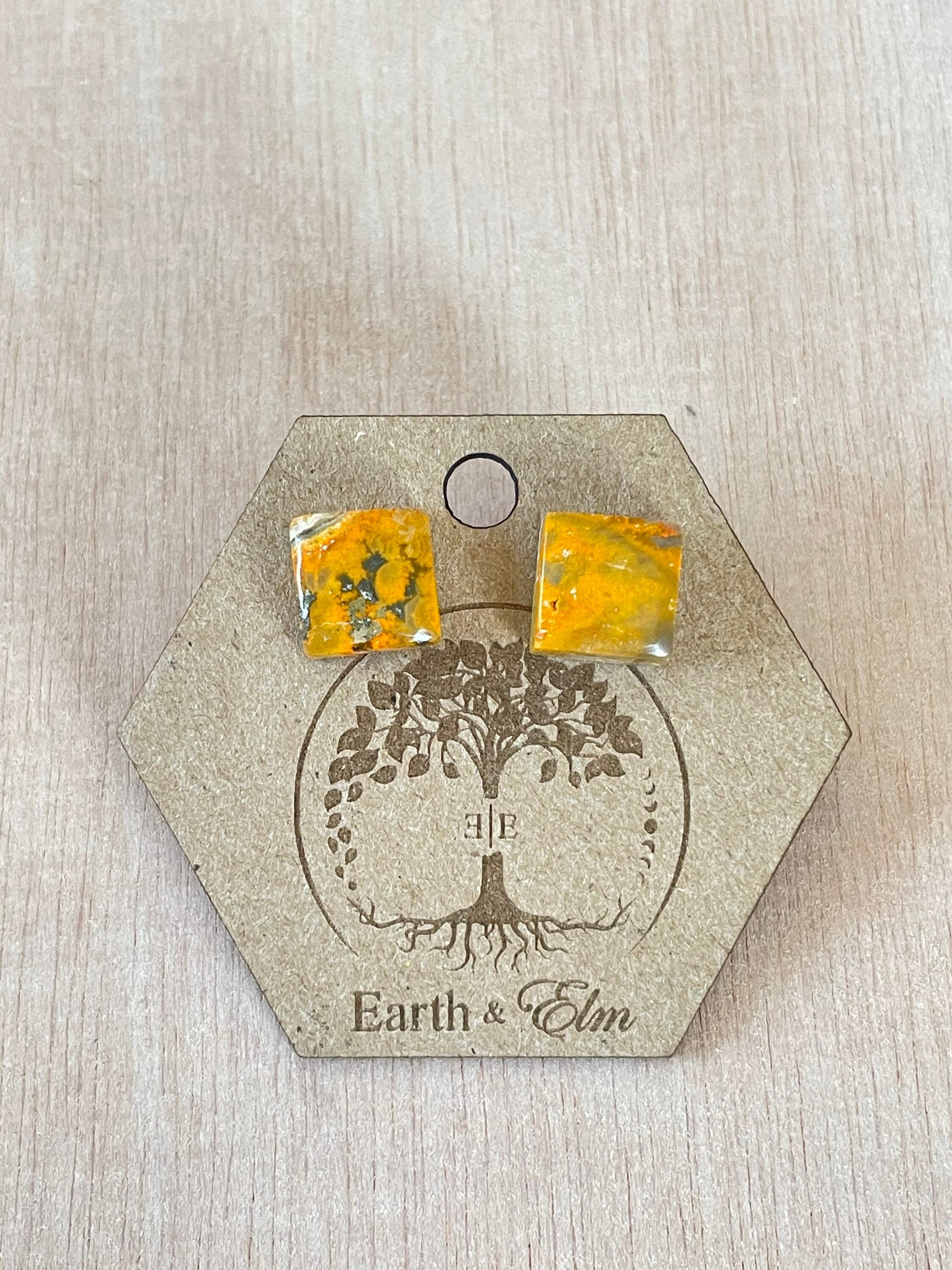 Bumblebee Jasper Square Studs | Stud Earrings | Gemstone Earrings | 8mm | 10mm | Cushion Cut
