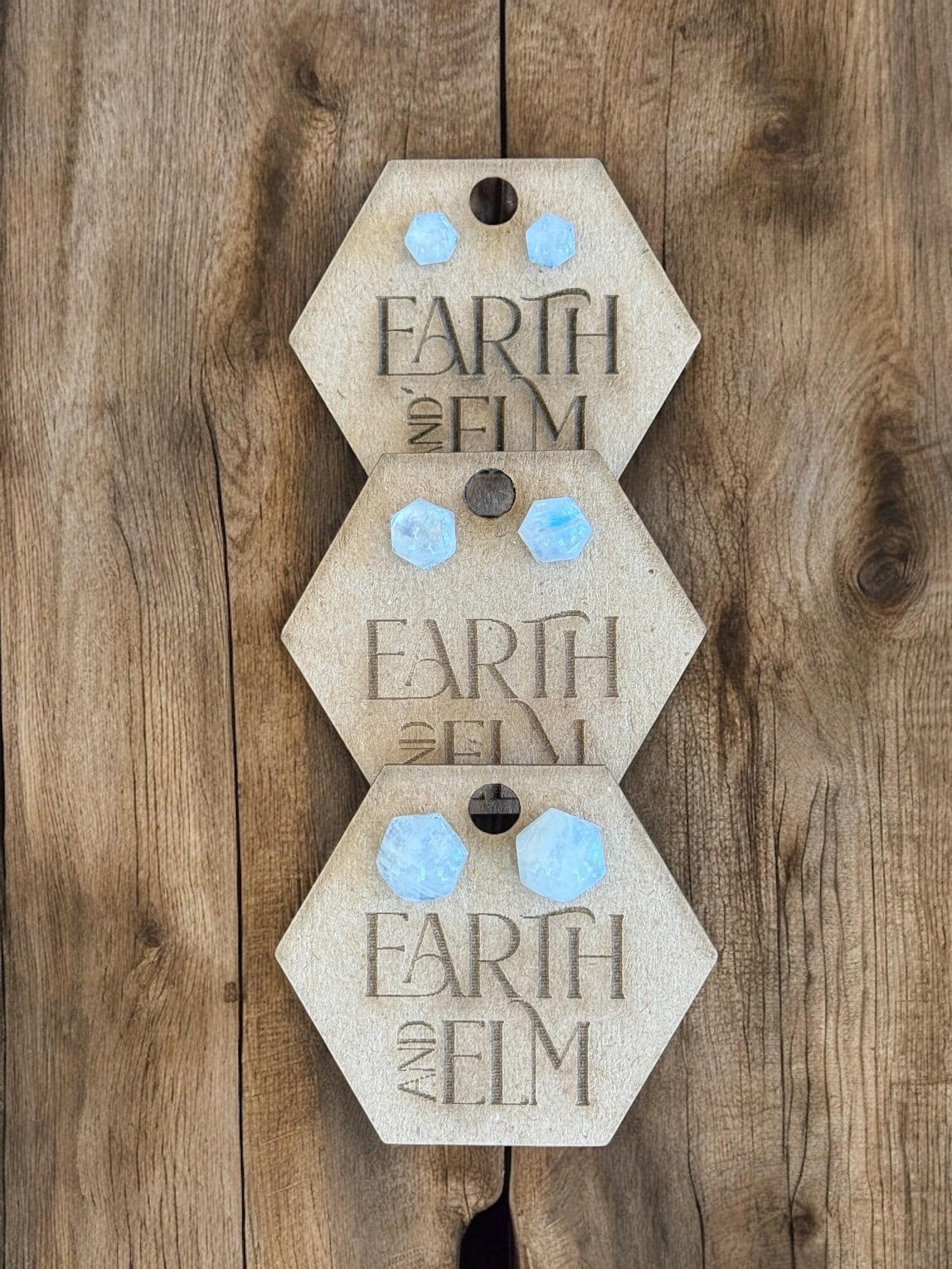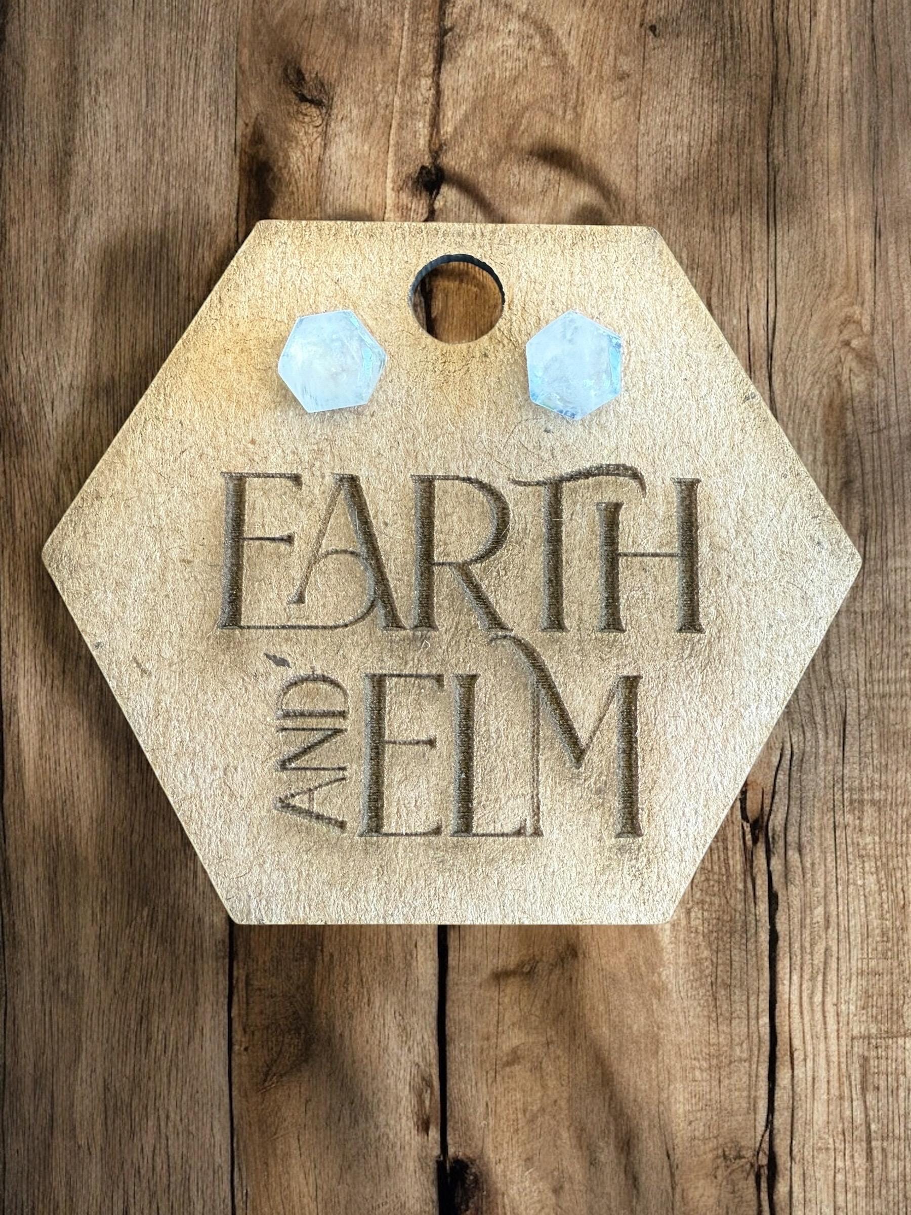 Moonstone Hexagon Cut Studs | Stud Earrings | Gemstone Earrings | 8mm Crystal Studs | 10mm