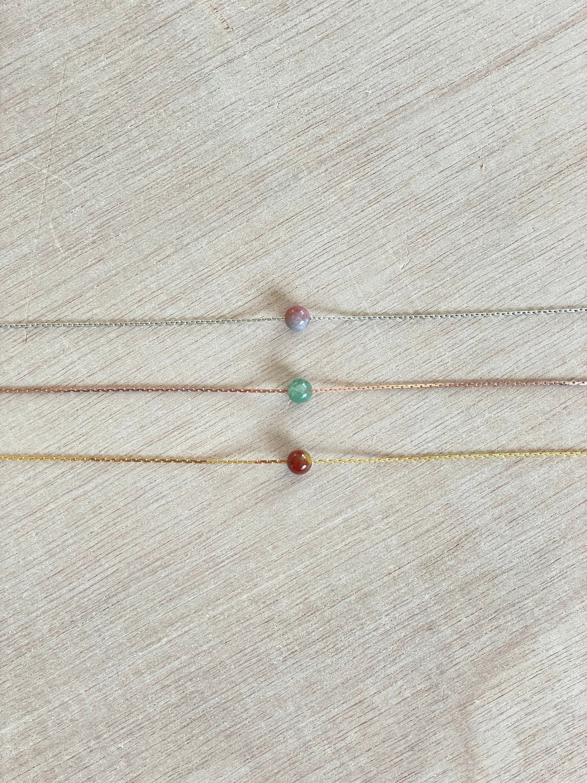 This necklace is made with an authentic 4mm gemstone bead strung on a double plated chain with copper as its base metal. The chain comes in three different plating options. Please choose plating option and desired length.